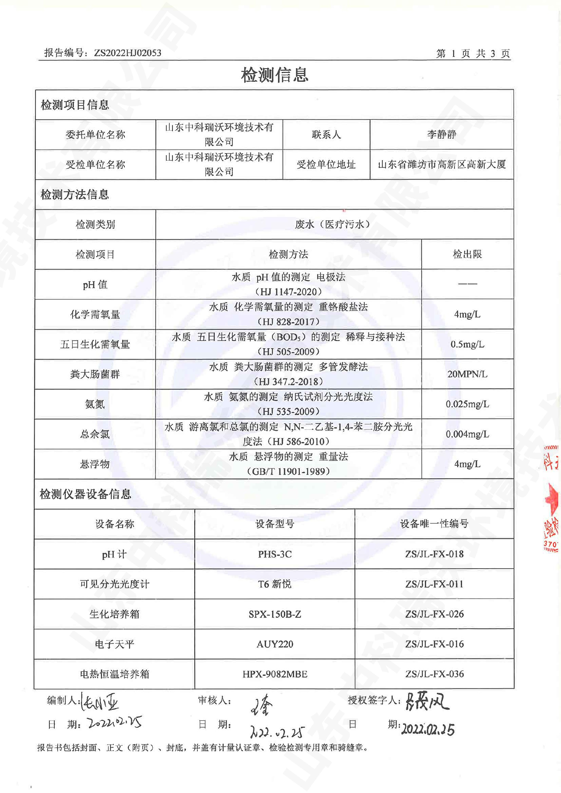 實(shí)驗(yàn)室廢水處理設(shè)備出水檢測報(bào)告