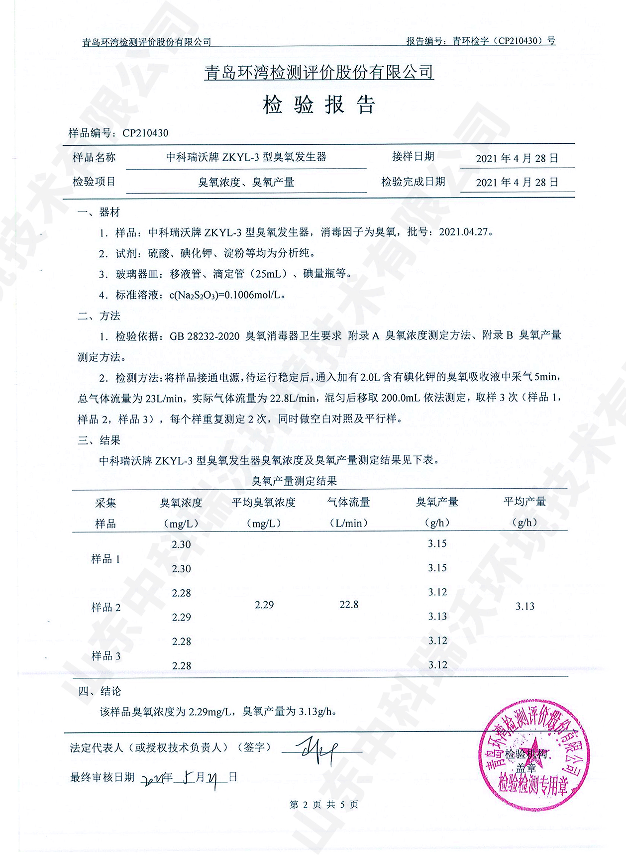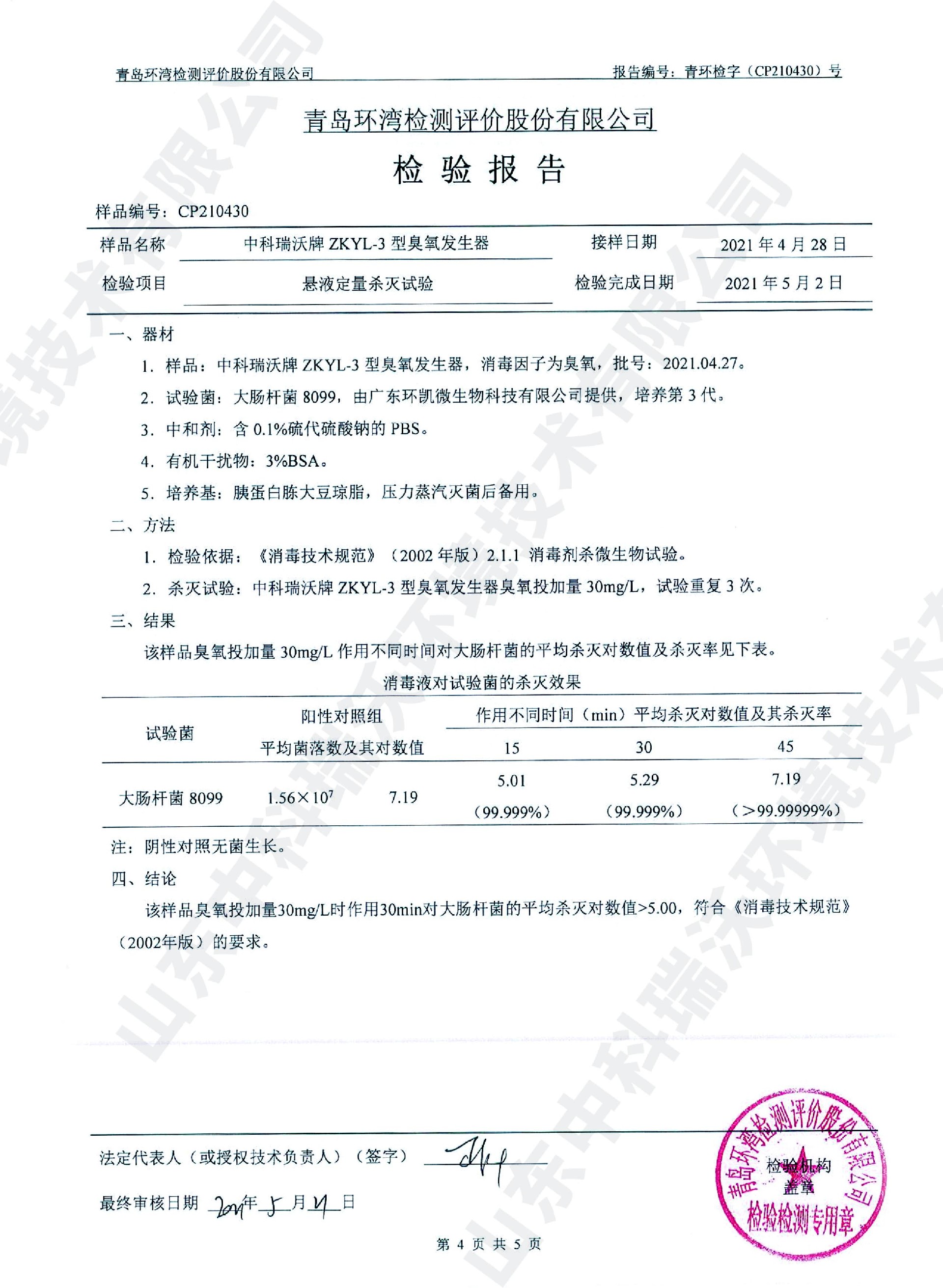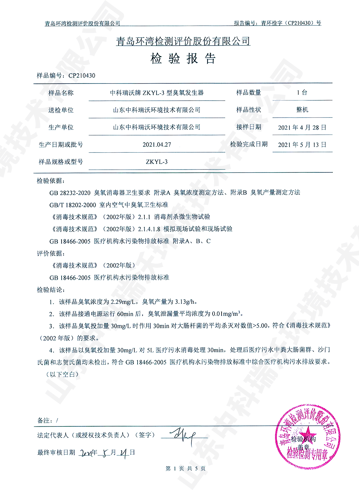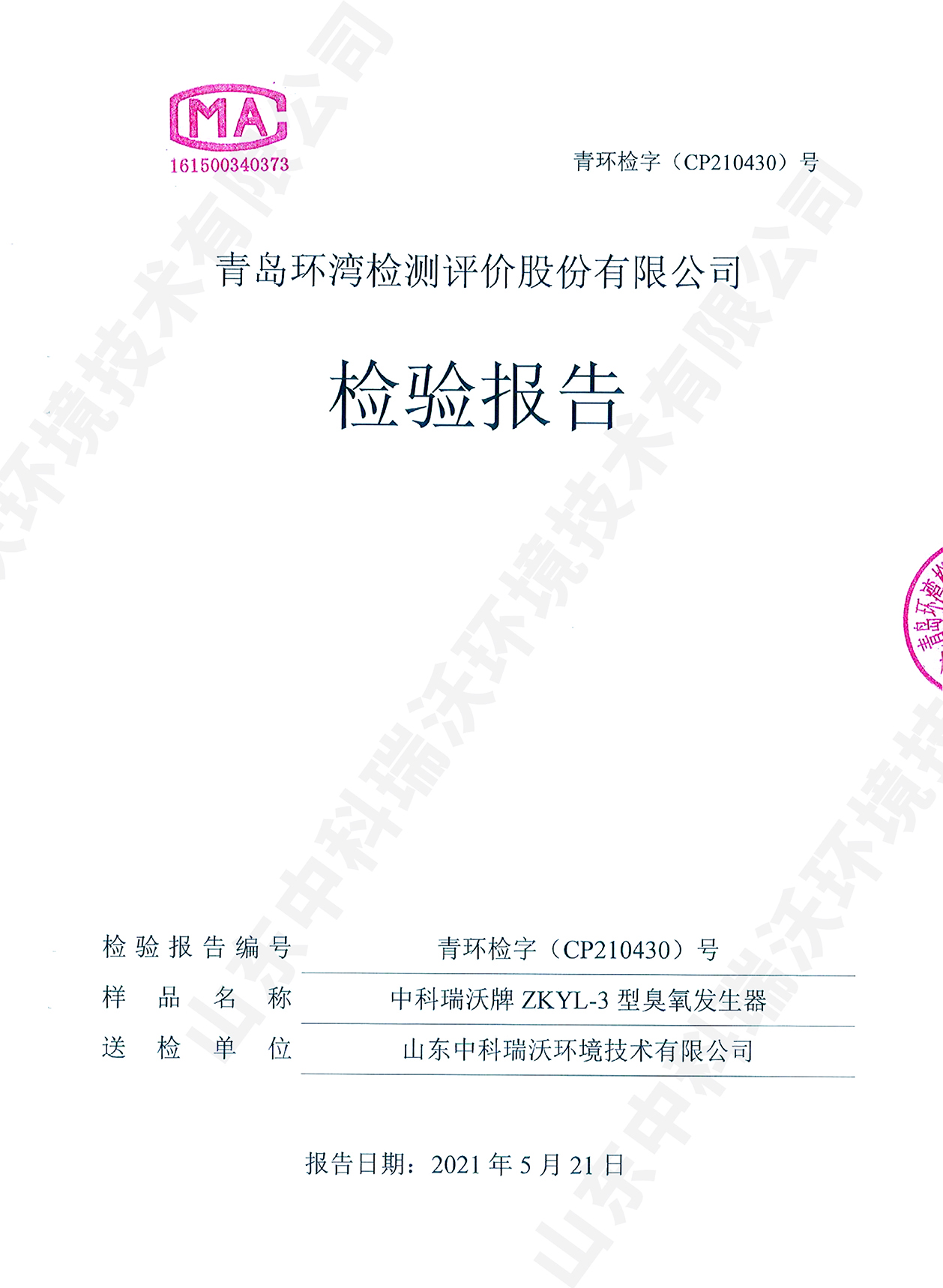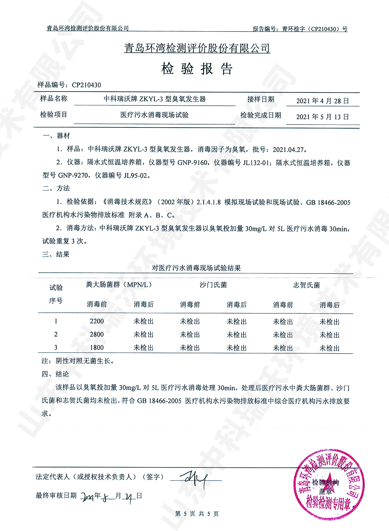 醫療污水處理設備檢測報告~臭氧+紫外線消毒